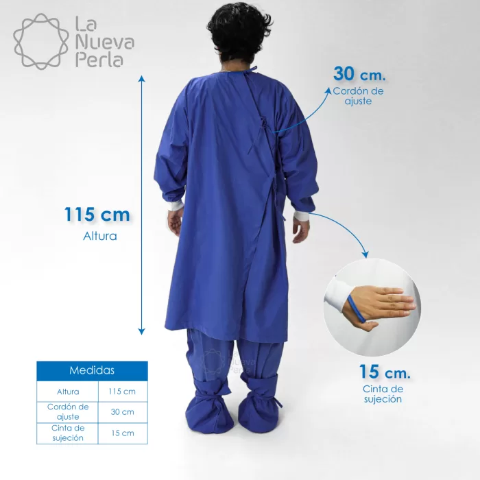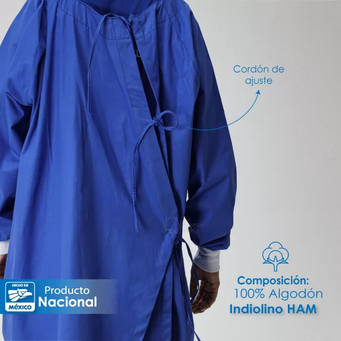 Bata de cirujano HAM en azul plumbago, 100% algodón indiolino. Unitalla, alta durabilidad y costuras profesionales. ¡Hecho en México!