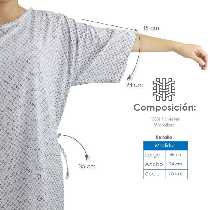 Bata de Paciente en Microfibra Peach Skin – Estrellitas, 100% Poliéster, Unitalla y Suave