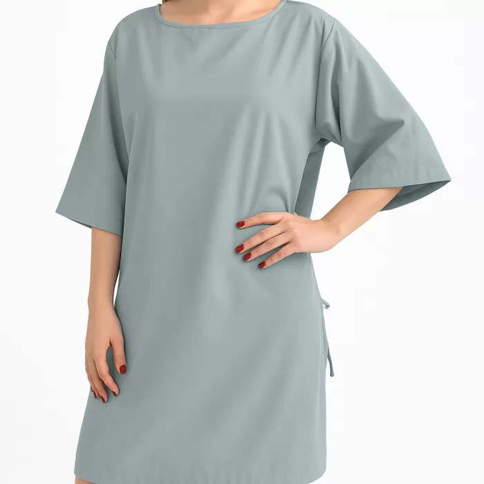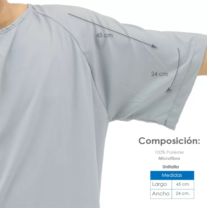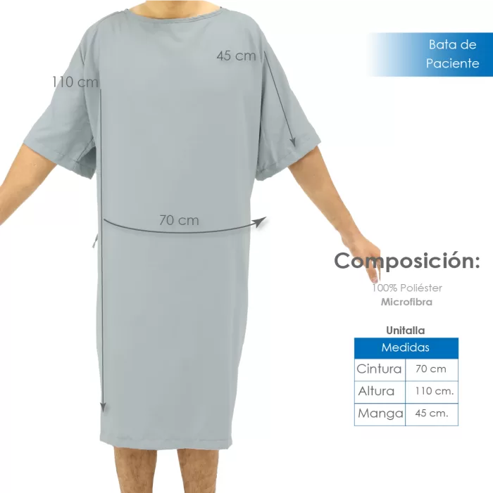 Bata de Paciente en Microfibra Peach Skin – Gris, 100% Poliéster, Unitalla y Suave