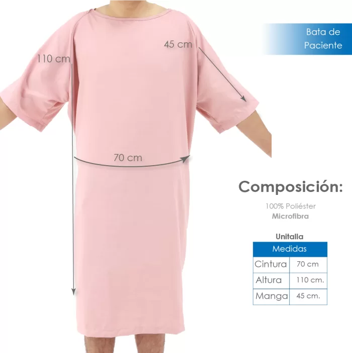 Bata de Paciente en Microfibra Peach Skin – Rosa, 100% Poliéster, Unitalla y Suave