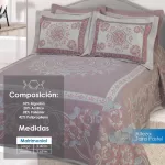 Colcha línea Alteza con diseños clásicos, perfecta para hotelería. Composición: 10% Algodón, 20% Acrílico, 28% Poliéster y 42% Polipropileno. Duradera, elegante y de fácil mantenimiento.