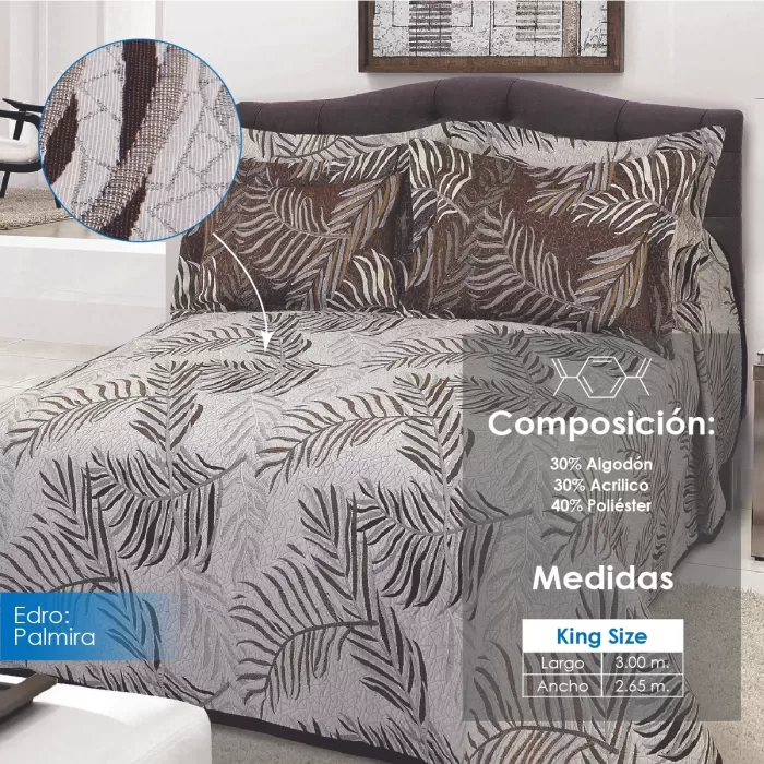 Colcha Edro es perfecta para el sector hotelero, combinando calidad, estilo y durabilidad. Hecha de 30% algodón, 30% acrílico y 40% poliéster, es suave, resistente y mantiene su forma tras múltiples lavados. Su diseño elegante y atemporal se adapta a cualquier ambiente, brindando comodidad y fácil mantenimiento.