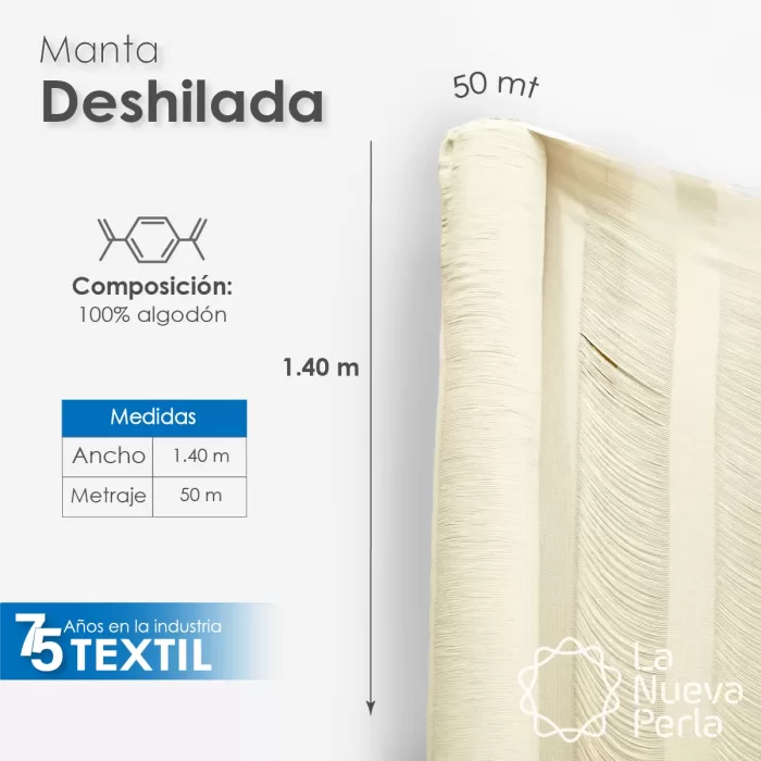 Manta Deshilada 1.40 M ancho 100% Algodón Crudo