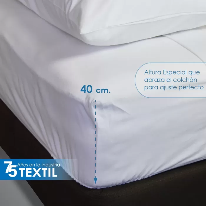 | Medidas | Individual colchón alto (25 – 40 cm), Individual colchón normal (hasta 25 cm), King size colchón alto (25 – 40 cm), King size colchón normal (hasta 25 cm), Matrimonial colchón alto (25 – 40 cm), Matrimonial colchón normal (hasta 25 cm), Queen size colchón alto (25 – 40 cm), Queen size colchón normal (hasta 25 cm) |