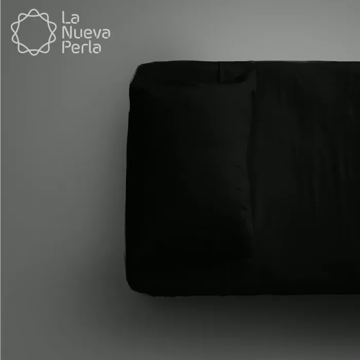 Juego Sábanas Manta Negro Queen Size Colchón Normal 25 cm