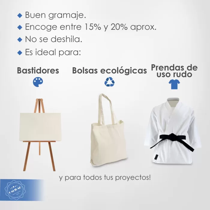 Fabricada con orgullo en México, esta loneta está compuesta completamente de algodón, asegurando suavidad y transpirabilidad excepcionales. El color crudo añade un aspecto natural y auténtico, ideal para proyectos que buscan un estilo rústico y artesanal.