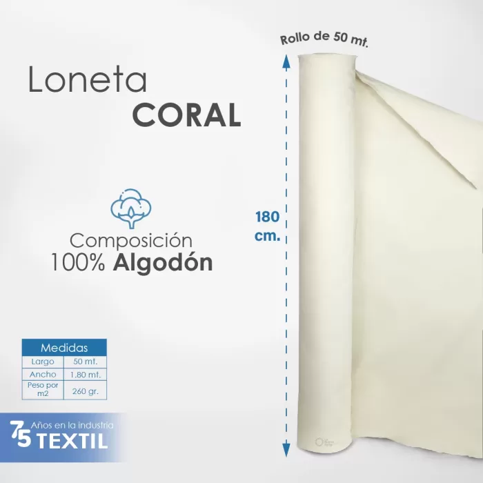Loneta Coral 1.80 M ancho cruda 260 gr