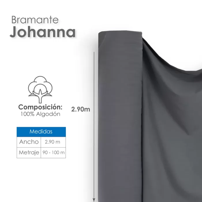 Con un ancho de 2.90 metros y disponible en rollos de aproximadamente 80 metros, esta tela ofrece una cobertura amplia y una gran flexibilidad para una variedad de proyectos y aplicaciones. Ya sea que estés renovando la decoración de un espacio comercial o buscando opciones duraderas para tu hogar, el Bramante Johanna es la elección perfecta para agregar calidad y estilo a tus proyectos textiles.