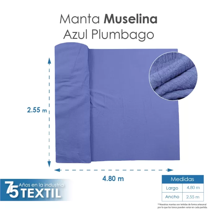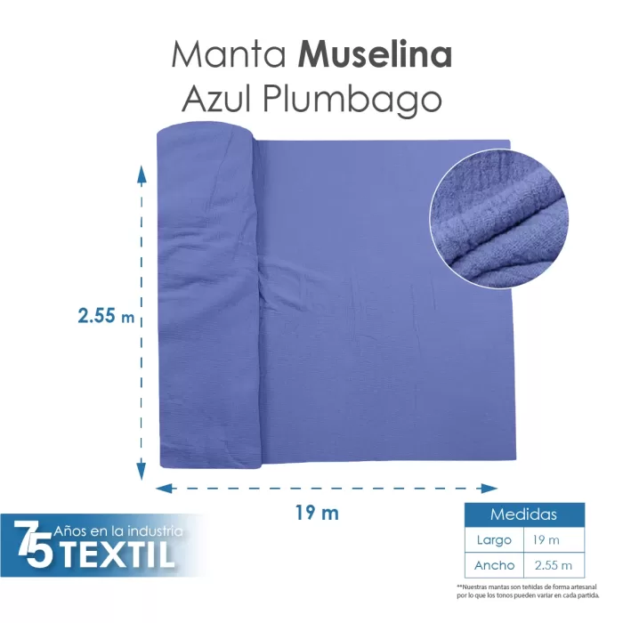 Manta Muselina 2.55 M ancho Azul Plumbago