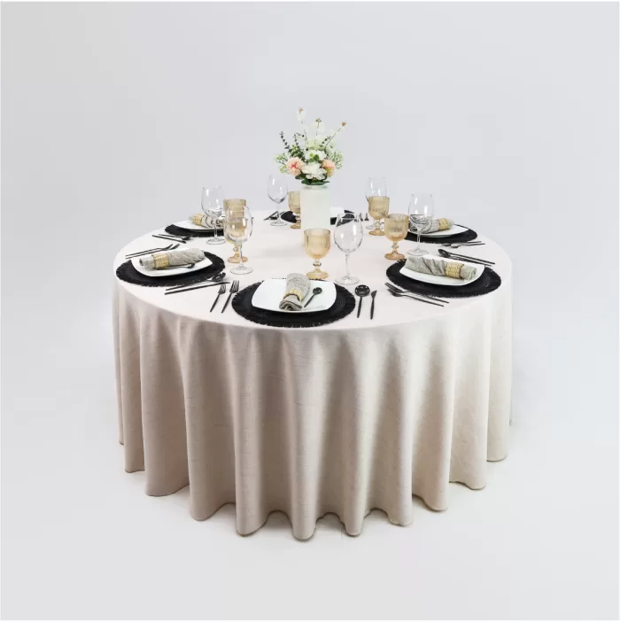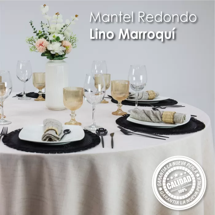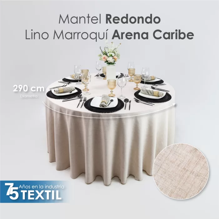 Mantel Redondo Lino Marroquí Arena Caribe 100% Poliéster