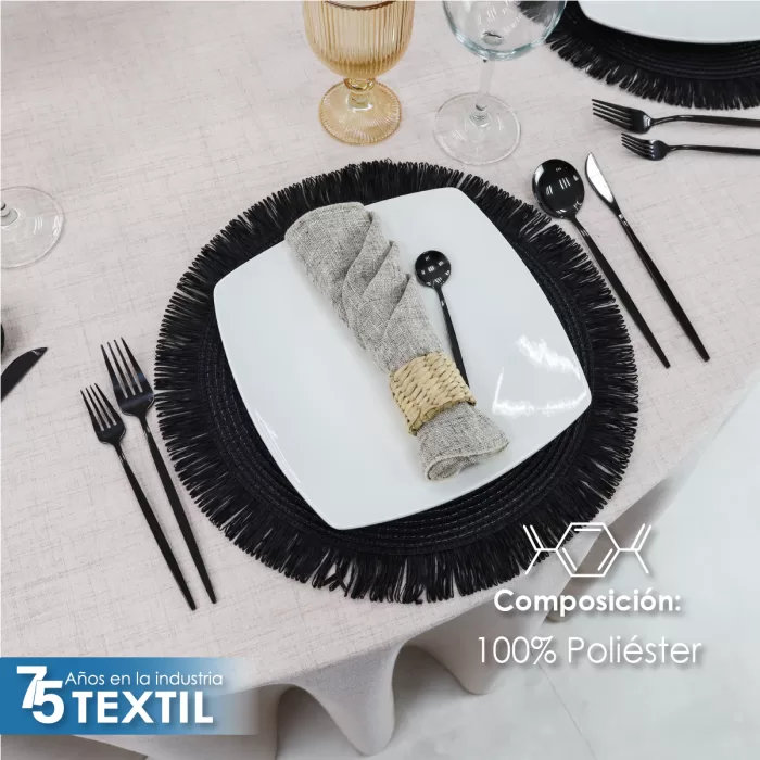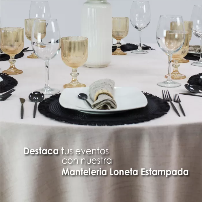 Descubre la elegancia y practicidad de nuestra línea Marroquí, una opción premium en telas para mantelería. Su ancho de 3 metros permite confeccionar manteles de gran tamaño sin costuras, logrando un acabado limpio y uniforme con medidas de 2.90 de diametro.