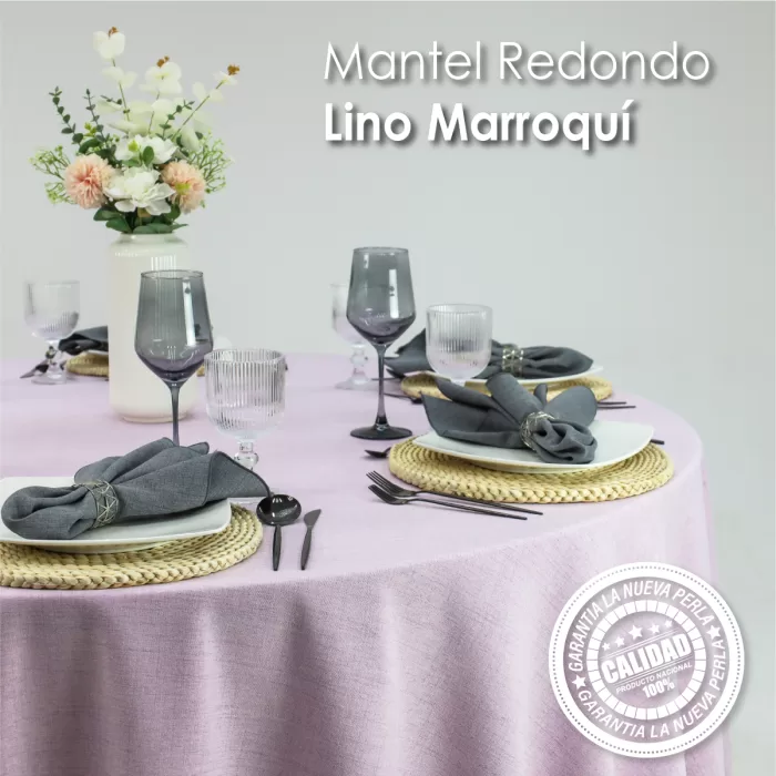 Mantel Redondo Lino Marroquí Lila 100% Poliéster