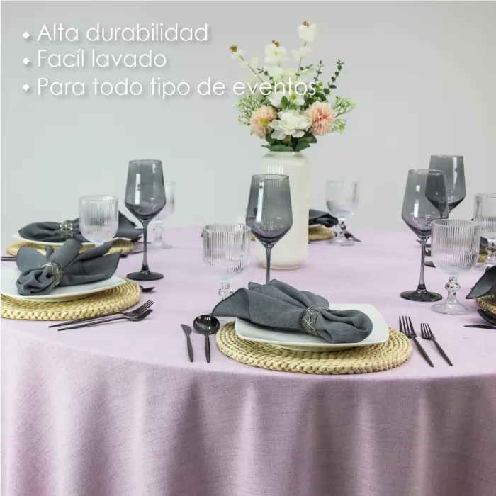 Mantel Redondo, 100% poliéster, jaspeado, sin uniones, medida 290 diametro, ideal para eventos. Resistente y disponible en varios colores.