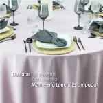 Descubre la elegancia y practicidad de nuestra línea Marroquí, una opción premium en telas para mantelería. Su ancho de 3 metros permite confeccionar manteles de gran tamaño sin costuras, logrando un acabado limpio y uniforme con medidas de 2.90 de diametro.