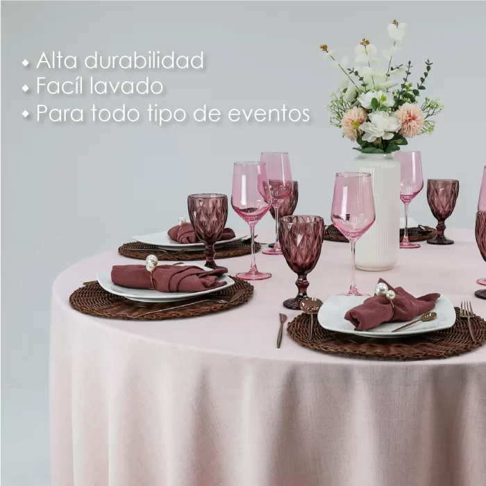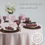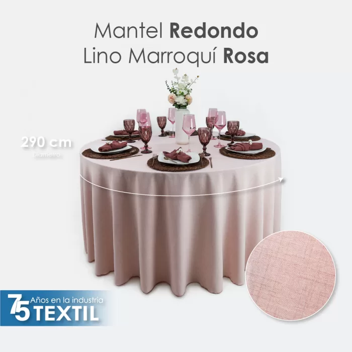 Mantel Redondo Lino Marroquí Rosa 100% Poliéster