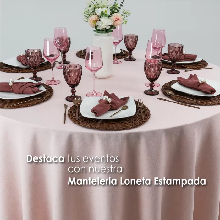Descubre la elegancia y practicidad de nuestra línea Marroquí, una opción premium en telas para mantelería. Su ancho de 3 metros permite confeccionar manteles de gran tamaño sin costuras, logrando un acabado limpio y uniforme con medidas de 2.90 de diametro.