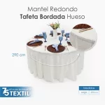 Mantel Redondo Tafeta Bordada 2.90 Diámetro Hueso