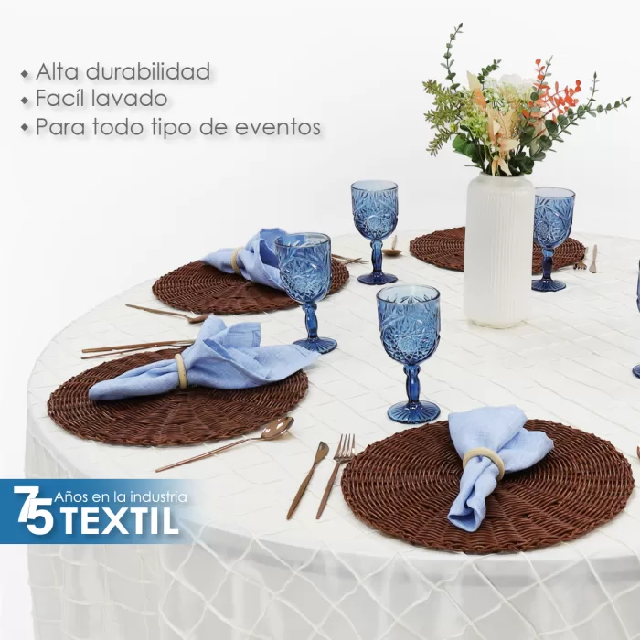 La excepcional calidad de nuestro mantel imperial de tafetán bordado se evidencia en su resistencia duradera. Diseñado para soportar el uso frecuente y los lavados repetidos sin perder su brillo ni color, este mantel se mantendrá impecable durante toda la celebración. Además, su amplia variedad de colores y diseños estampados te permite personalizar la mesa según el tema o la decoración de tu evento, creando una experiencia verdaderamente única y memorable.