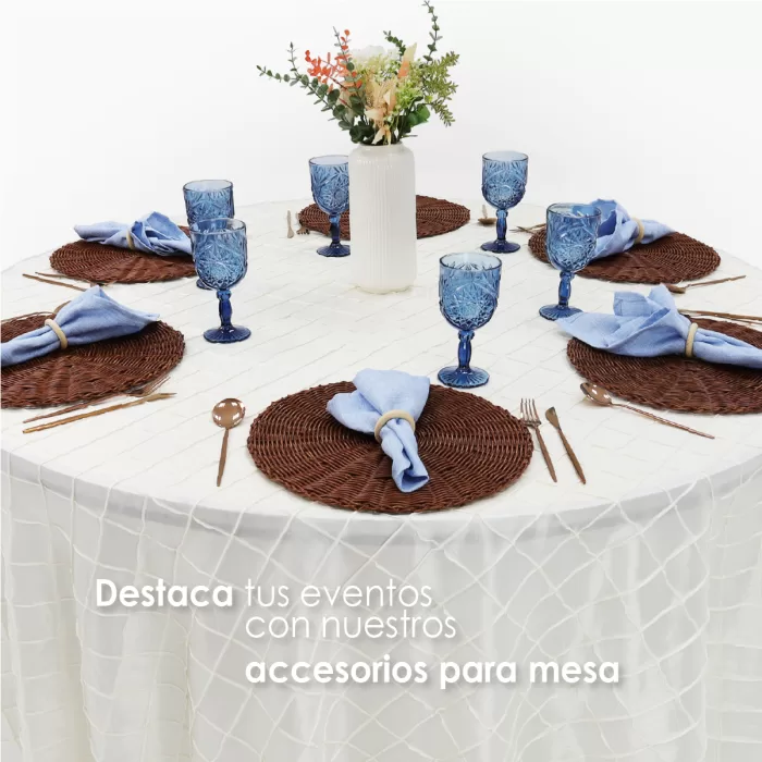 | Tablón | Redondo | Imperial | Bambalina | Cubre Mantel | Camino | Servilleta | Moños |