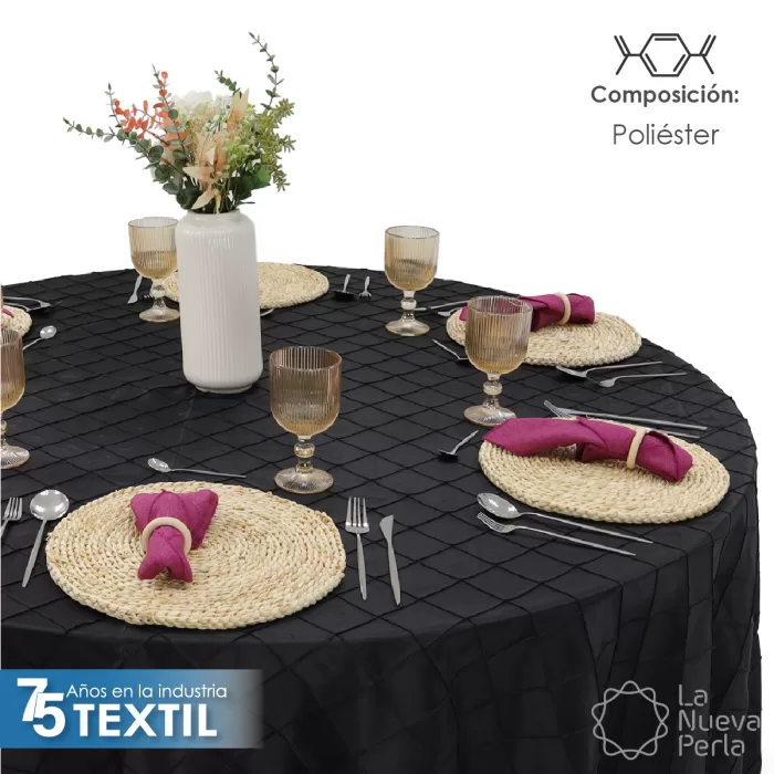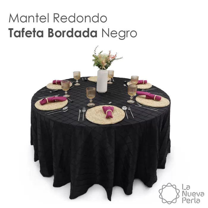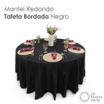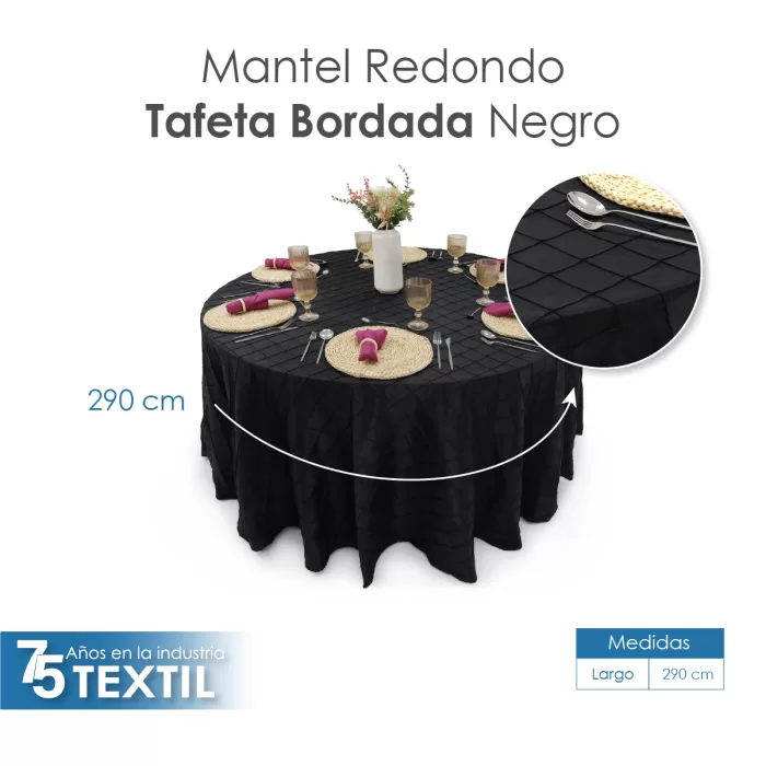 Mantel Redondo Tafeta Bordada 2.90 Diámetro Negro