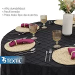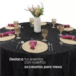 Mantel imperial de tafetán bordado, 100% poliéster, estampado con uniones, medida 2.90 de diámetro ideal para eventos. Resistente y disponible en varios colores.