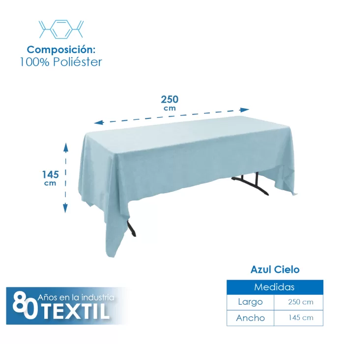 Mantel Tablón Lino Ginebra 2.50×1.45 m Azul Cielo