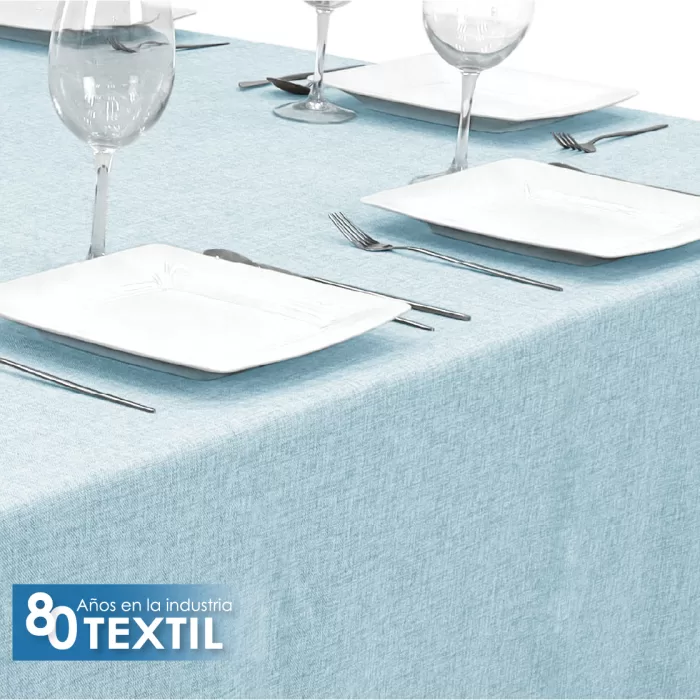 Mantel Tablón Lino Ginebra 3.00×1.45 m Azul Cielo