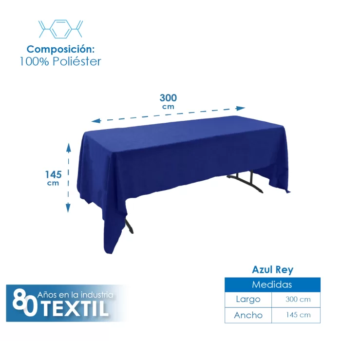 Mantel Tablón Lino Ginebra 3.00×1.45 m Azul Rey