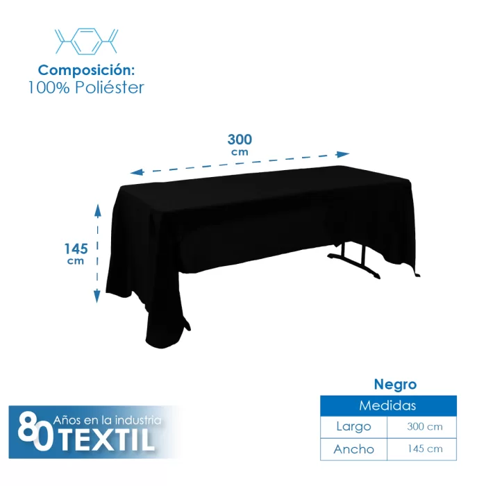 Mantel Tablón Lino Ginebra 3.00×1.45 m Negro