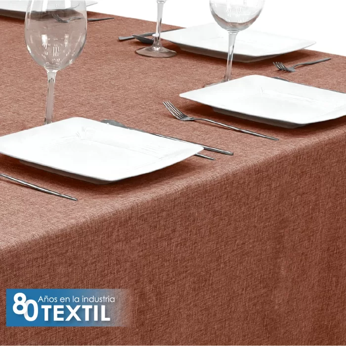 Mantel tablón de lino Ginebra, 100% poliéster, textura de lino natural, medida 3 m x 1.45 m, ideal para eventos. Resistente y disponible en varios colores.