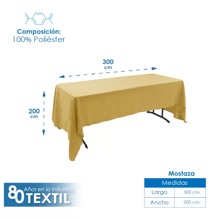 Mantel Tablón Lino Ginebra 3.00×2.00 m Mostaza