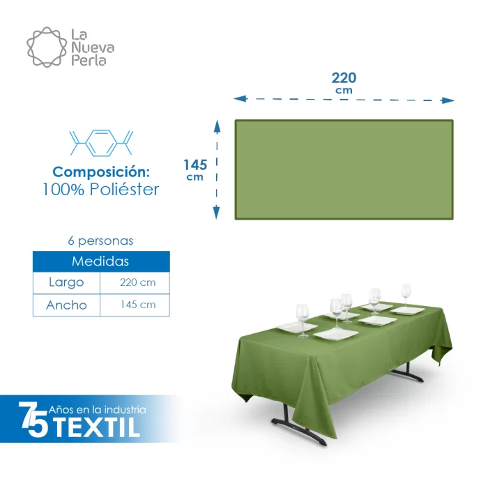 Mantel Tablón Lino Venecia 220X145 cm (para tablón 120×60 cm) Aguacate
