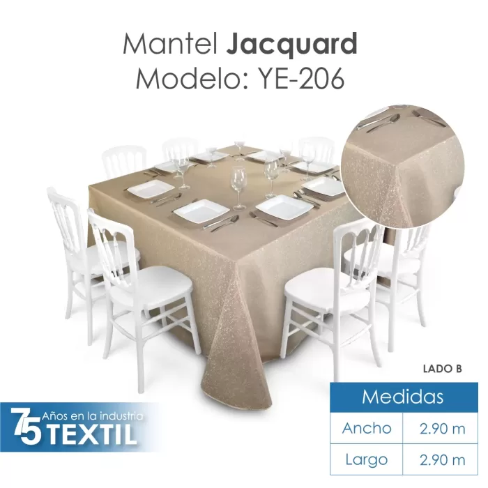 La calidad del mantel Jacquard no solo se ve en su diseño, sino también en su durabilidad. Resiste el desgaste, las manchas y los lavados frecuentes, lo que asegura que se mantenga en perfectas condiciones durante mucho tiempo. Esto lo convierte en una opción ideal para quienes buscan una inversión duradera para sus eventos.