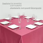 La calidad del mantel Jacquard no solo se ve en su diseño, sino también en su durabilidad. Resiste el desgaste, las manchas y los lavados frecuentes, lo que asegura que se mantenga en perfectas condiciones durante mucho tiempo. Esto lo convierte en una opción ideal para quienes buscan una inversión duradera para sus eventos.