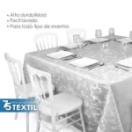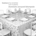 La calidad del mantel Jacquard no solo se ve en su diseño, sino también en su durabilidad. Resiste el desgaste, las manchas y los lavados frecuentes, lo que asegura que se mantenga en perfectas condiciones durante mucho tiempo. Esto lo convierte en una opción ideal para quienes buscan una inversión duradera para sus eventos.