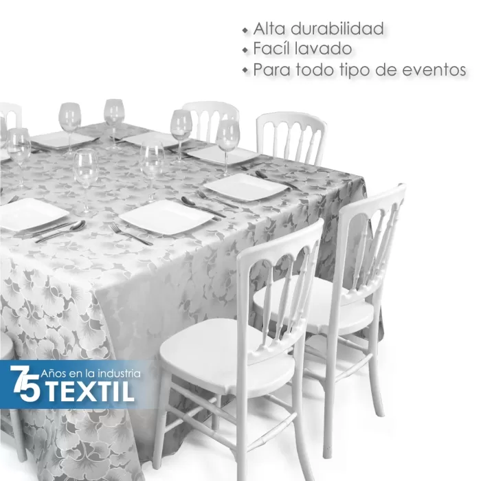Su tejido resistente y fácil de lavar lo hace perfecto tanto para eventos formales como informales. No tendrás que preocuparte por su mantenimiento, ya que su material es ideal para un uso frecuente sin perder su belleza. Es la combinación perfecta entre elegancia y funcionalidad, lo que lo convierte en la pieza central de cualquier mesa.