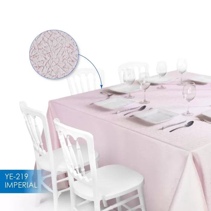 Además, nuestro mantel imperial de Jacquard viene en una amplia gama de colores y estampados. Esta variedad te permite personalizar cada evento según la decoración o el tema que hayas elegido, asegurando que la mesa sea un reflejo de tu estilo. Desde tonos clásicos hasta estampados modernos, hay opciones para cada tipo de celebración.