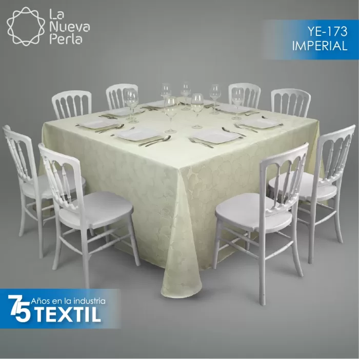 Mantel imperial de Yackard, 100% poliéster, estampado, sin uniones, medida 2.90 m x 2.90 m, ideal para eventos. Resistente y disponible en varios colores.