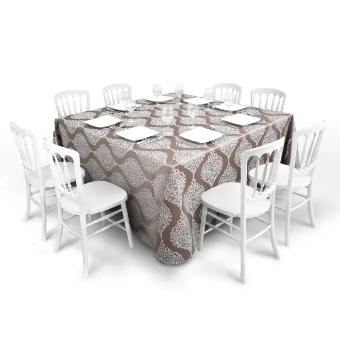 La calidad del mantel Jacquard no solo se ve en su diseño, sino también en su durabilidad. Resiste el desgaste, las manchas y los lavados frecuentes, lo que asegura que se mantenga en perfectas condiciones durante mucho tiempo. Esto lo convierte en una opción ideal para quienes buscan una inversión duradera para sus eventos.