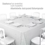 La calidad del mantel Jacquard no solo se ve en su diseño, sino también en su durabilidad. Resiste el desgaste, las manchas y los lavados frecuentes, lo que asegura que se mantenga en perfectas condiciones durante mucho tiempo. Esto lo convierte en una opción ideal para quienes buscan una inversión duradera para sus eventos.