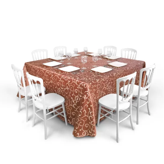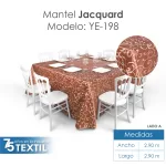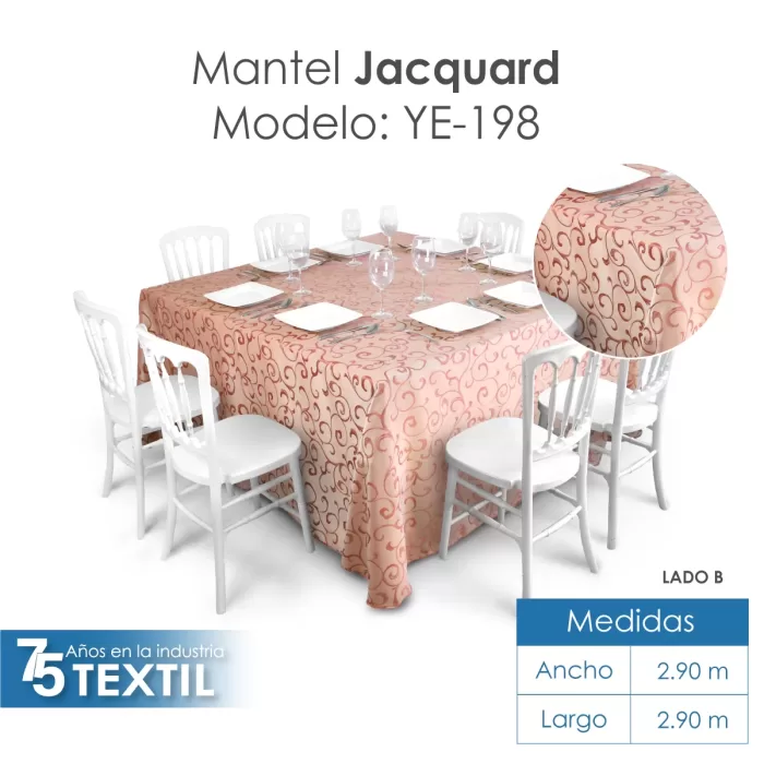 La calidad del mantel Jacquard no solo se ve en su diseño, sino también en su durabilidad. Resiste el desgaste, las manchas y los lavados frecuentes, lo que asegura que se mantenga en perfectas condiciones durante mucho tiempo. Esto lo convierte en una opción ideal para quienes buscan una inversión duradera para sus eventos.