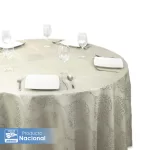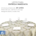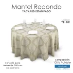 Mantel redondo de Yackard, 100% poliéster, estampado, sin uniones, medida 290 diámetro, ideal para eventos. Resistente y disponible en varios colores.