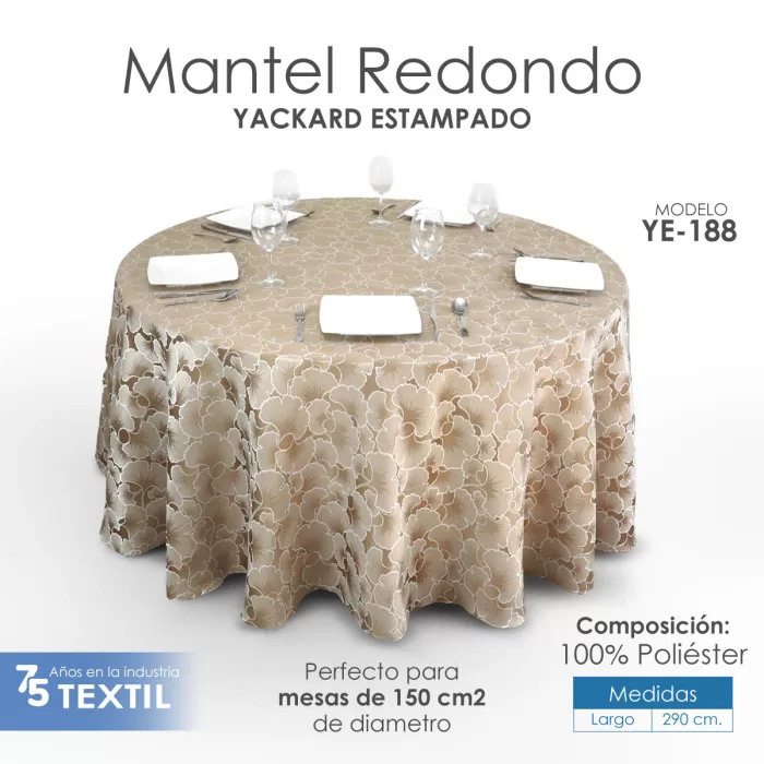 Destaca en tus eventos con nuestro majestuoso mantel redondo de Yackard. Elaborado con un tejido de poliéster de primera calidad, este mantel presenta un diseño estampado elaborado con detalles intrincados, sin uniones visibles, lo que brinda una apariencia impecable en mesas de gran tamaño. Con unas dimensiones expansivas de 290 de diámetro, este mantel es la elección perfecta para cubrir grandes mesas y crear un ambiente de lujo en bodas, banquetes y eventos especiales.