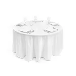 Mantel redondo de Yackard, 100% poliéster, estampado, sin uniones, medida 290 diámetro, ideal para eventos. Resistente y disponible en varios colores.