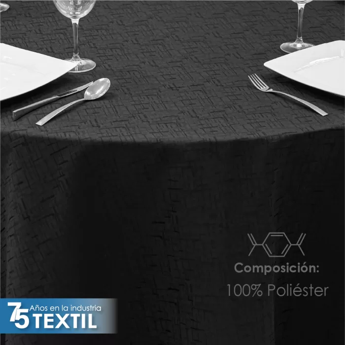 Mantel redondo de Yackard, 100% poliéster, estampado, sin uniones, medida 290 diámetro, ideal para eventos. Resistente y disponible en varios colores.