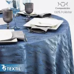 Mantel redondo de Yackard, 100% poliéster, estampado, sin uniones, medida 290 diámetro, ideal para eventos. Resistente y disponible en varios colores.