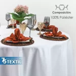 Mantel redondo de Yackard, 100% poliéster, estampado, sin uniones, medida 290 diámetro, ideal para eventos. Resistente y disponible en varios colores.
