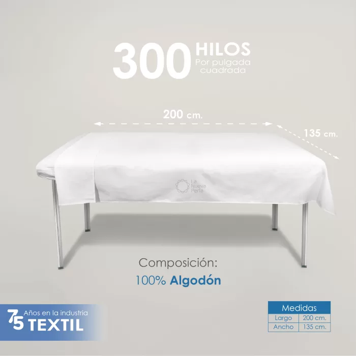 Sábana clínica de 135 x 200 cm, 200 hilos. Ligera y suave, perfecta para hotelería y spas. Tela de alta calidad, ideal para uso frecuente. Fabricamos medidas especiales.