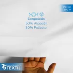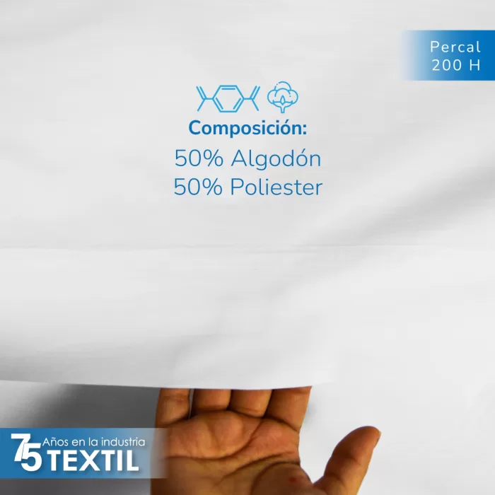 Sábana de percal 200 hilos, 50% algodón y 50% poliéster. No encoje, costuras profesionales, hecho en México.