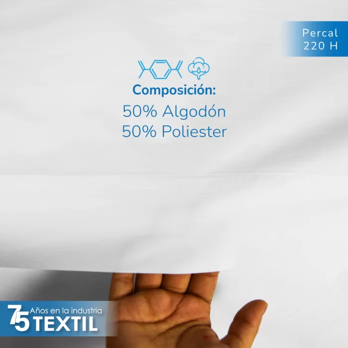 Sábana plana percal 220 hilos 50% algodón 50% poliéster, costuras profesionales, hecho en México.